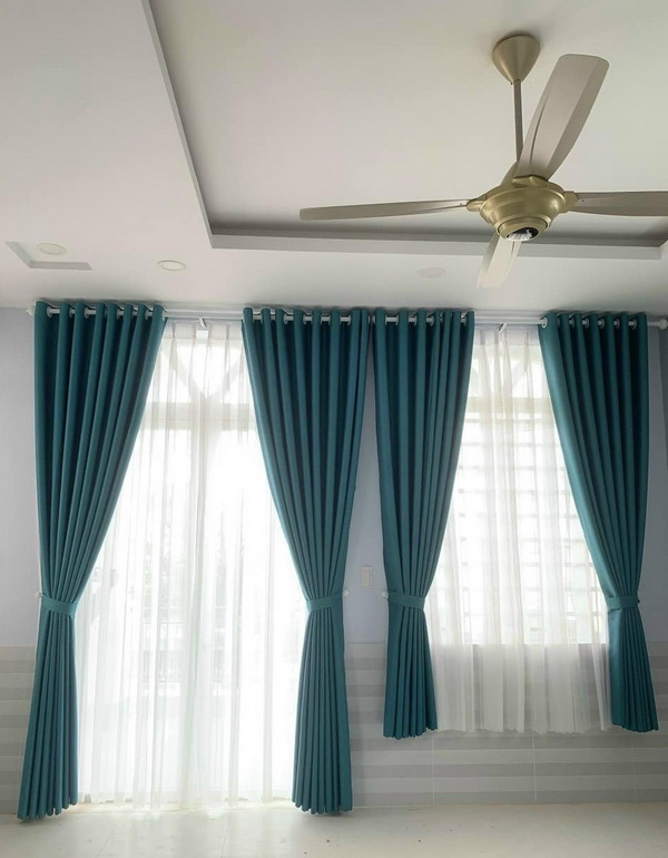 Phòng khách: sử dụng rèm 2 lớp (voile mỏng + vải dày) để linh hoạt giữa trang trí và che nắng.